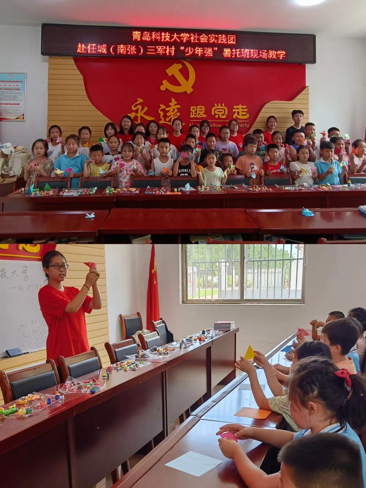 7月21日,志愿者赴任城南张三军村“少年强”暑托班展开现场教学。上午,志愿者对暑托班的小学生开展爱国教育。爱国教育,最为重要的是要坚持从娃娃抓起,从学生抓起,突出思想内涵,强化教育引导做到润物无声,推动爱国主义教育融入贯穿青少年学习教育的全过程,融入思想和灵魂深入,融入自身血脉。志愿者向小朋友们讲述党史小故事,并现场进行红色儿歌的教学。教学过后,带领小朋友一起绘画创作,把对党和祖国的热爱之情用绘画的形式表达出来。