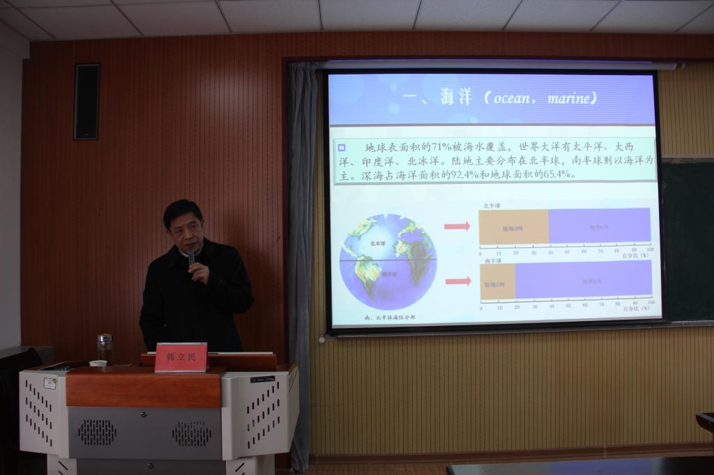 504教室,中国海洋大学韩立民教授为2013级MBA全体学员做了题为“海洋资源、海洋产业与海洋经济发展展望”的专题讲座,讲座由经济与管理学院院长王志宪教授主持。