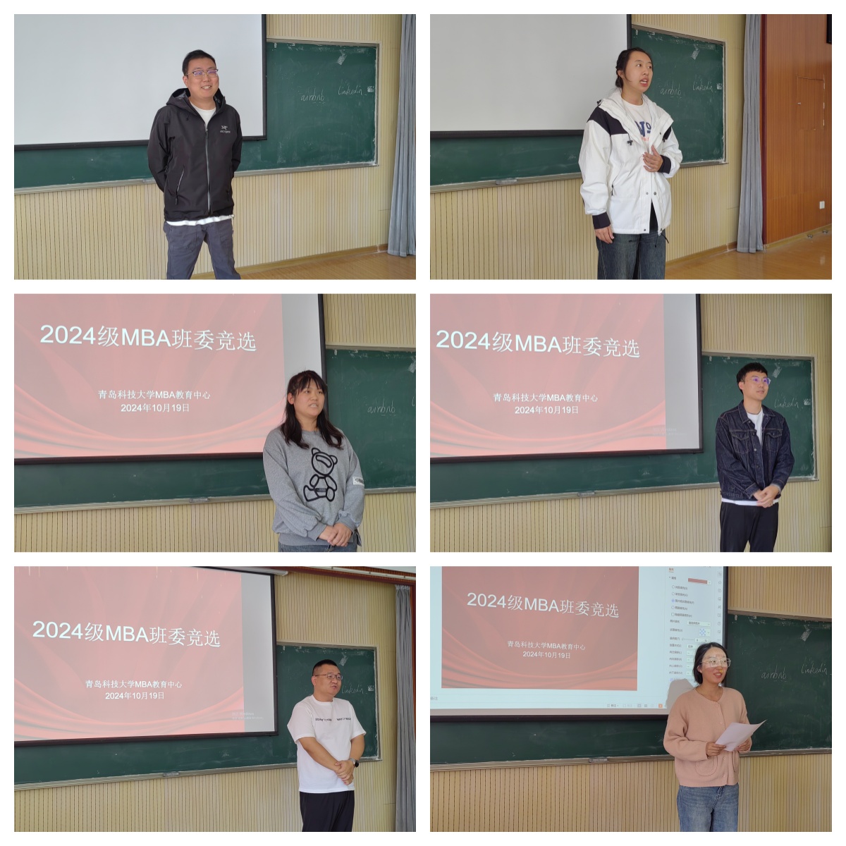 为进一步加强班级管理,做好班级服务相关工作,10月19日,青岛科技大学MBA教育中心开展2024级MBA班委竞选活动,全体2024级MBA学员以及MBA教育中心老师参加选举活动。经过个人申请、竞选演讲、无记名投票等环节,选举确定7名班委,现将班委风采展示如下。