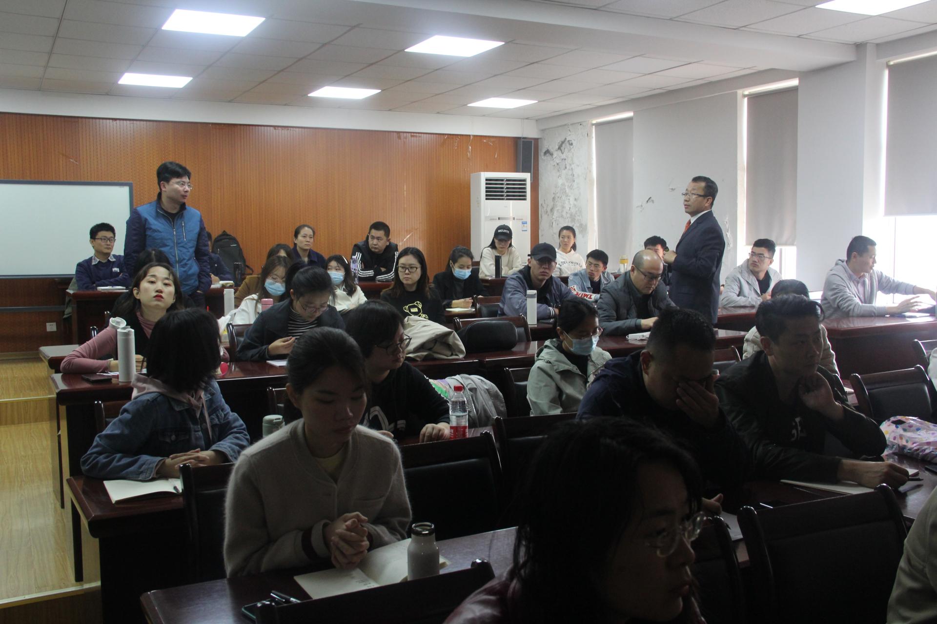 10月24日上午,经济与管理学院工商管理系主任,博士生导师杨皎平教授为MBA学员做了题为“社会价值肯定与再职型新员工组织社会化”的报告。