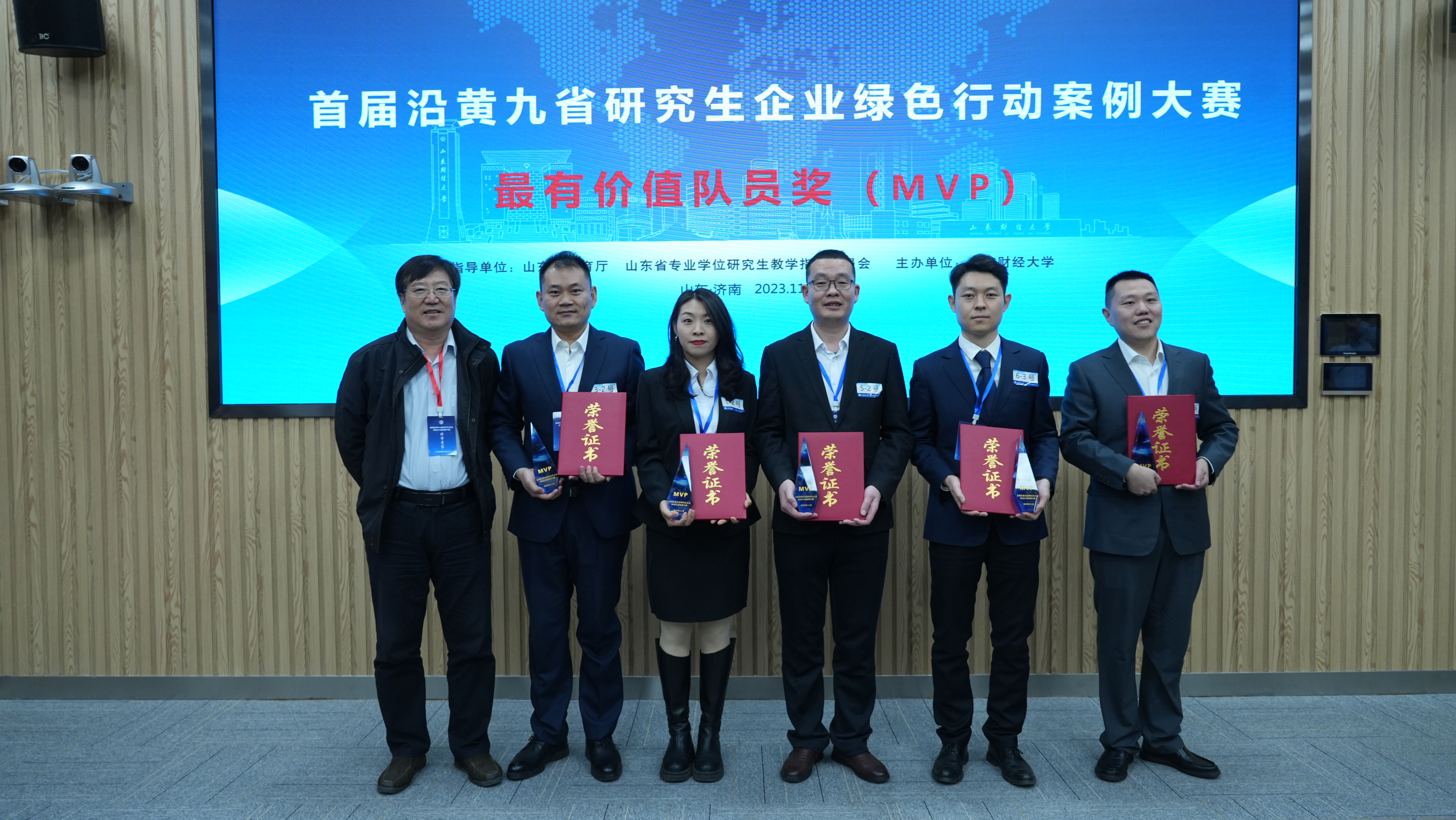 最终,经过现场展示与评审组综合评议,我校以团队排名第六的成绩获得首届沿黄九省研究生企业绿色行动案例大赛团队三等奖,2023级MBA学员徐剑获得最有价值队员奖(MVP)。