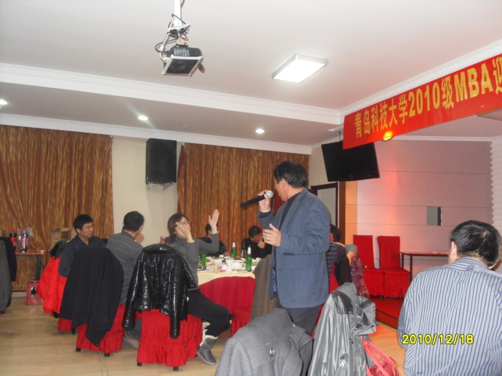 联谊会在班委精心准备的“班级电子图片展”中拉开帷幕,结合图片主持人用幽默的语言讲述了本学期班级的大记事,使同学们别有一番回味。杜裕禄书记代表老师为同学们送来祝福,祝愿大家在科大结束了第一学期的MBA学习生活,并在新的一年事业有成,家庭幸福。