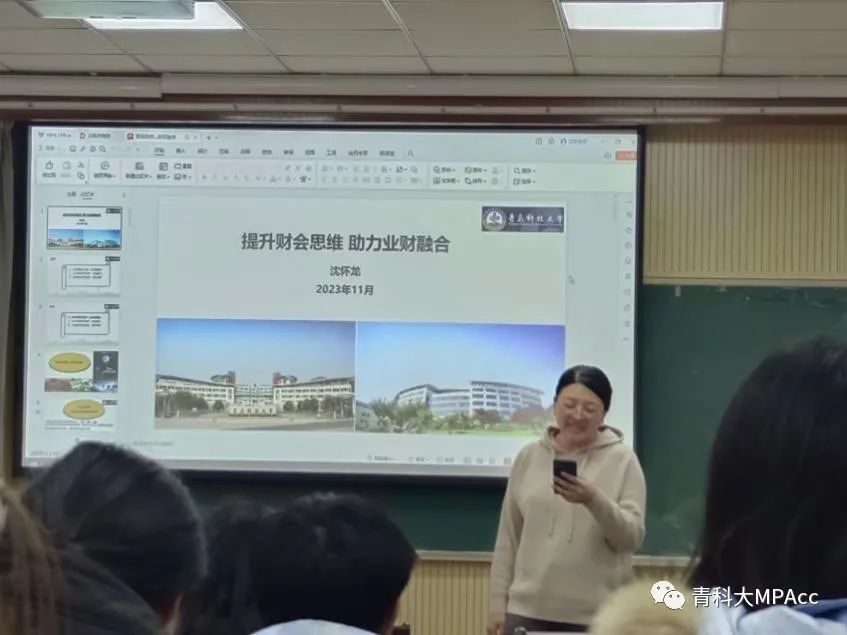 经济越发展,会计越“与时俱进”,如何提升财会思维、实现会计转型成为当下的热点话题。为了让同学们进一步探究这一问题,经济与管理学院于11月23日下午,在经管楼504会议室组织开展学术讲座,邀请了上海市松江国有资产投资经营管理集团有限公司的沈怀龙总监为2023级MPAcc师生带来《提升财会思维,助力业财融合》的报告分享。本次活动由MPAcc教育中心主任孙兰兰老师主持,2023级MPAcc同学以及其他感兴趣的同学到场聆听了此次报告。