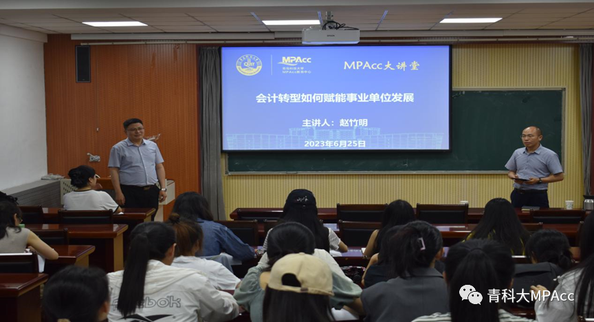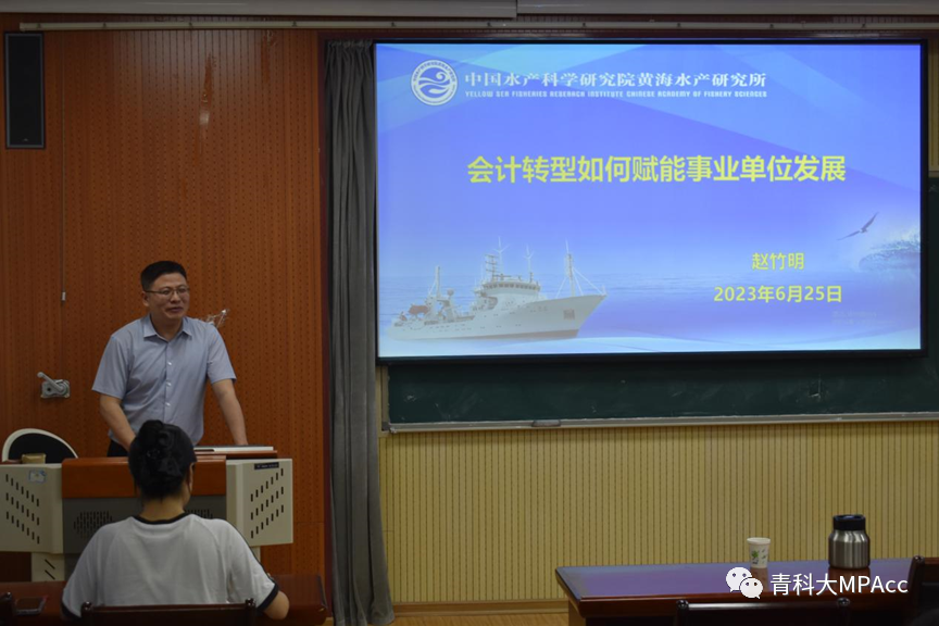 6月25日晚,青岛科技大学经济与管理学院邀请了MPAcc校外导师、中国水产科学研究院黄海水产研究所财务处副处长赵竹明博士,在经管楼学术报告厅作了题为《会计转型如何赋能事业单位的发展》的讲座。