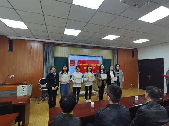 党总支书记李德成书记、副院长吕承超老师和副院长宫攀老师、MPAcc教育中心主任刘树艳教授以及财务与会计系张占贞教授为在山东半岛首届MPAcc案例大赛初赛中获奖的队伍颁奖,其中,获得一等奖的是:6的6次方队、MDZZ队;获得二等奖的有:菜的安详队、发际线总和我作队、我觉得对就队、第六感队、五小金刚队;获得三等奖的是重在参与组、非常5+1队、superego队、创新分析一级团队、帕累托效率队。