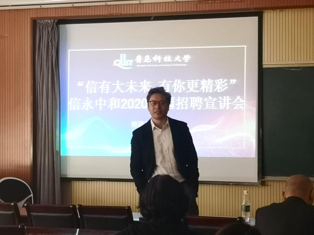 于经管楼505室与信永中和联合开展“信有大未来 有你更精彩”2020年校园招聘宣讲会。信永中和合伙人青岛分部总经理我校会计专硕校外导师宋进军一行、MPAcc教育中心主任刘树艳老师及部分应届毕业生参与本次宣讲会。