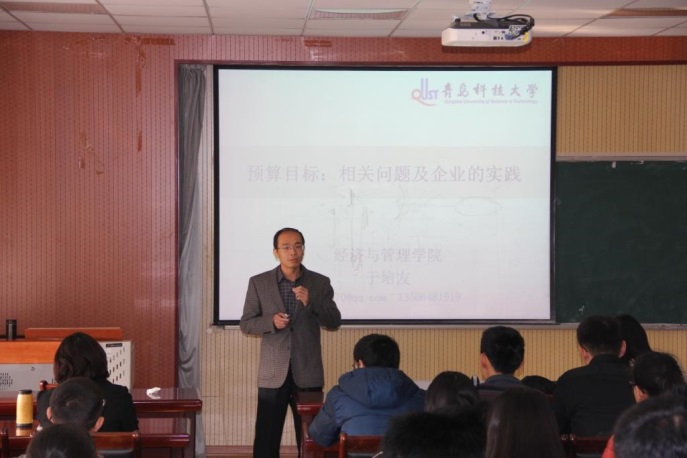 20151128日,于培友老师在经管楼505教室做了题为《预算目标:相关问题及企业的实践》的专题讲座。讲座由会计系王玉英副教授主持,首届MPACC2015MBA全体学员聆听了讲座。